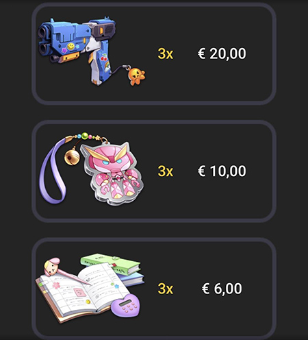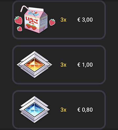 桜田バトルエンジェルのシンボルごとの配当は次のようになっています。賭け金が1ユーロの場合の配当です。